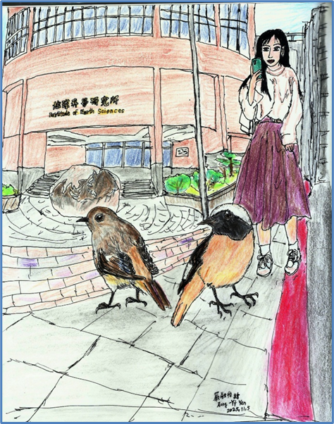 黃尾鴝有時會選擇研究院區作為度冬的棲息環境