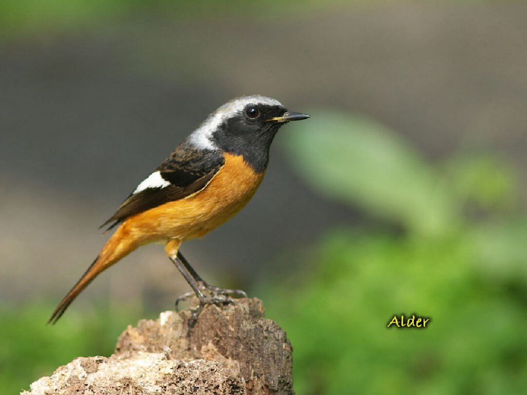 哈,我告訴你,你看到的兩隻鳥其實是同一個鳥類物種的雄鳥和雌鳥喔!牠們都是黃尾鴝,只是牠們雌雄異色,在山鳥當中如果是雌雄異色的物種,則多半雄鳥會有比較光鮮亮麗的吸睛羽色,母鳥則多半會比較偏向較為樸實並且容易融入背景的羽色。黃尾鴝的雄鳥和雌鳥就屬於這種典型的雌雄異色案例。黃尾鴝的12根尾羽當中,只有兩枚中央尾羽呈現黑色,其餘尾羽均呈現橙色,這也是牠們被稱為『黃尾」的名稱緣由。黃尾鴝是我們臺灣的冬候鳥喔!