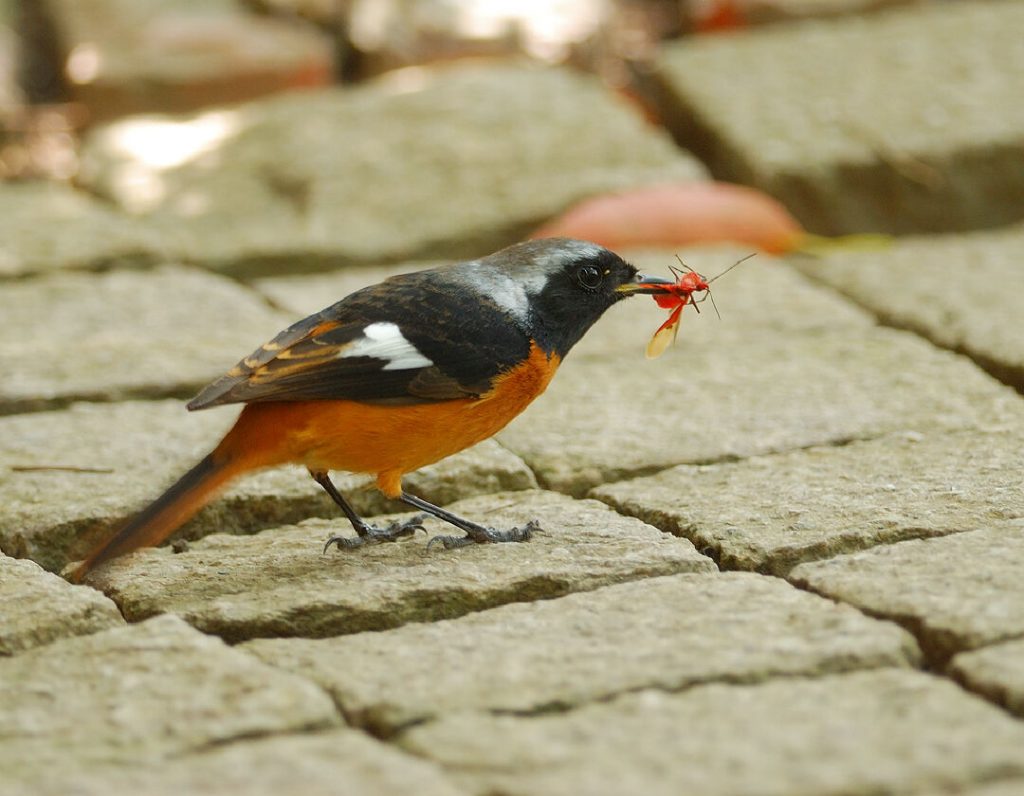 Petty,Hello,最近我在中研院地球科學研究所附近的人行道上看到兩隻身上帶有橘色的鳥。其中一隻頭頂灰白色,前額、臉部一直到前頸都是黑色的,胸部以下則是橙黃色,胸前羽毛至尾羽和腰羽為橙褐色,雙翼黑色當中帶有三角形白斑。另外一隻則是全身大半為土黃色的小鳥,但頭部、頸部至背部則呈現灰褐色,羽翼則呈現黑褐色並帶有明顯白塊斑。這兩隻鳥雖然顏色差很多,但是我覺得兩隻鳥的身形有一些類似,特別是尾羽和雙翼的顏色有些相似,且都有白斑的分布。你認為這兩隻鳥有關連嗎?牠們之間有什麼關係嗎?